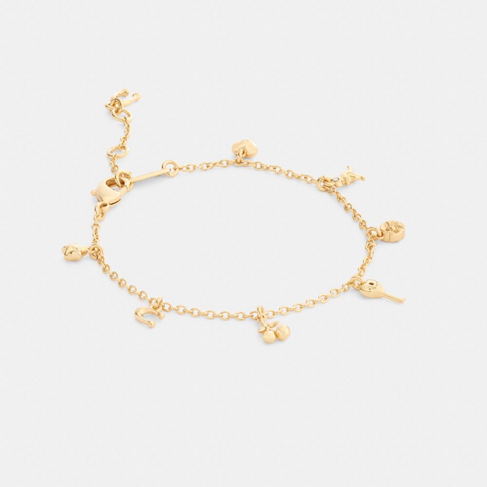 Nous avons choisi quelques-uns de nos motifs les plus emblématiques, les avons rétrécis pour en faire des mini breloques sur ce bracelet chaîne délicat. Il est complété par un fermoir ajustable pour convenir à la plupart des poignets.