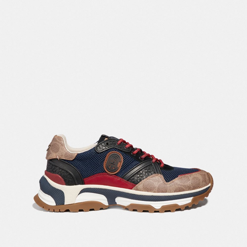 The sporty, retro-inspired C143 sneaker has an exaggerated, technically crafted sole. This leather and lightweight mesh design features our Signature canvas and rubber panels. It's finished with our Coach retro graphic for a sporty touch.