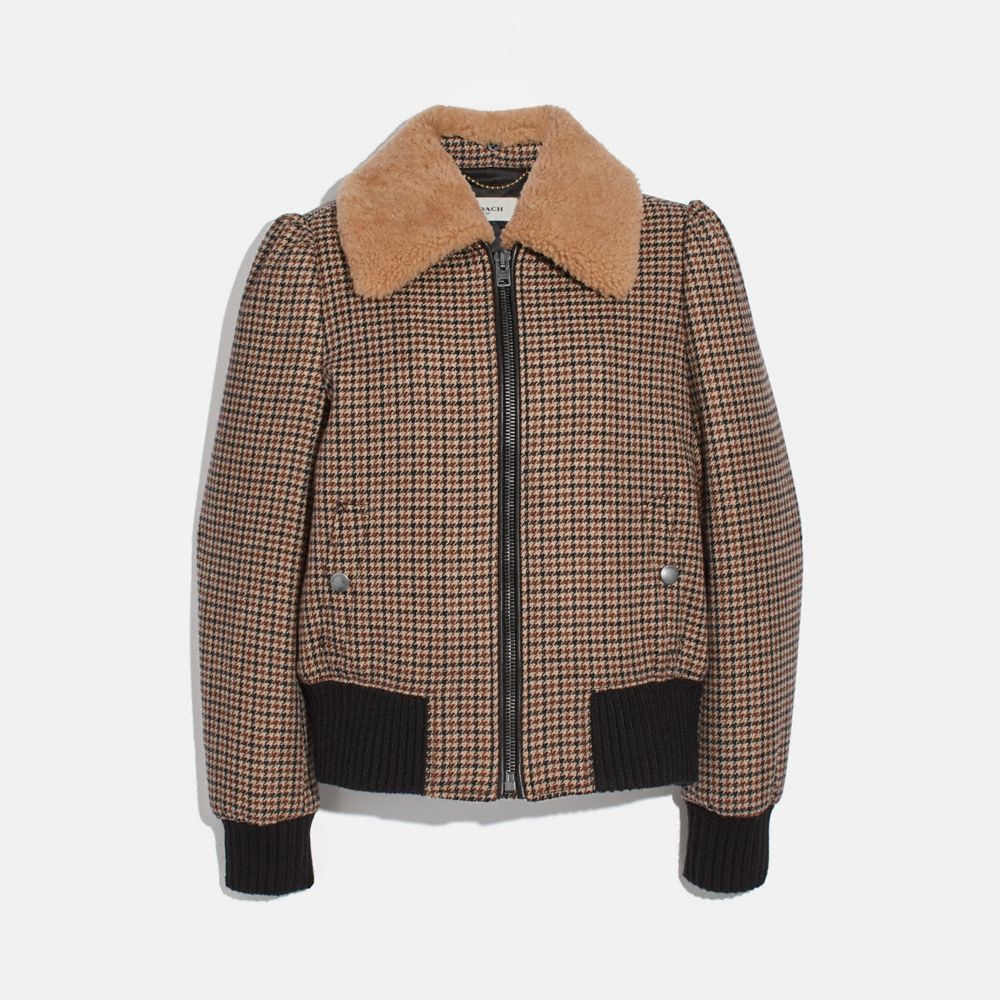 Veste Aviateur à Carreaux Avec Col Amovible En Mouton Retourné