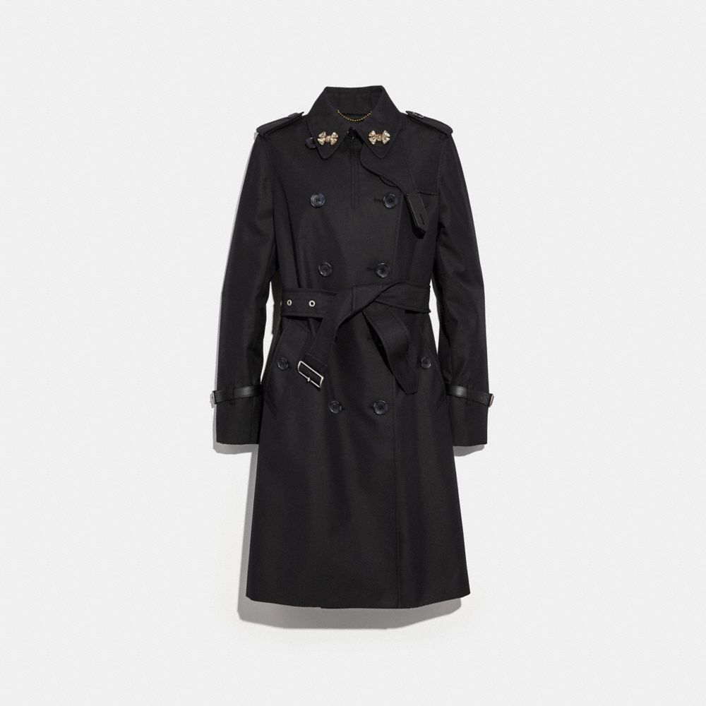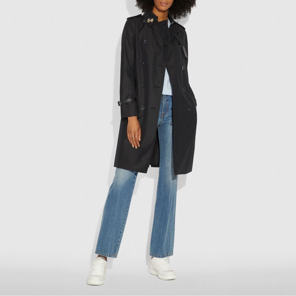 An iconic Coach silhouette, this military-inspired trench is updated for the season. It’s designed with a streamlined fit and authentic leather detailing.