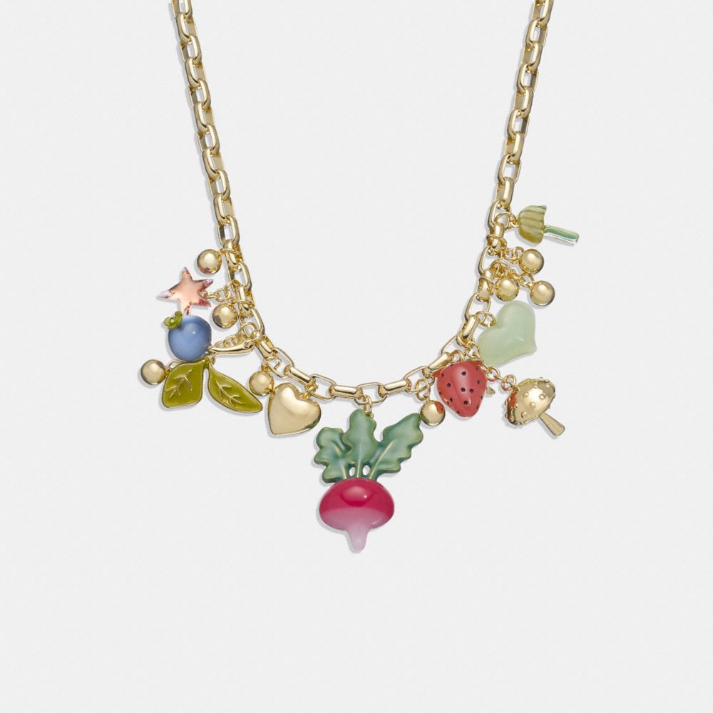 A special collection, Coach x Observed By Us celebrates the little things—both real and imagined—that give us joy. It combines our all-American attitude with the whimsical spirit of Observed By Us, a collaboration between artist Jessica Herschko and actress Kirsten Dunst. Featuring colorful, hand-drawn illustrations, each piece tells a story that imbues everyday subjects with a sense of wonder. Detailed with an array of bold, playful charms, this necklace adds a fun touch to any look.