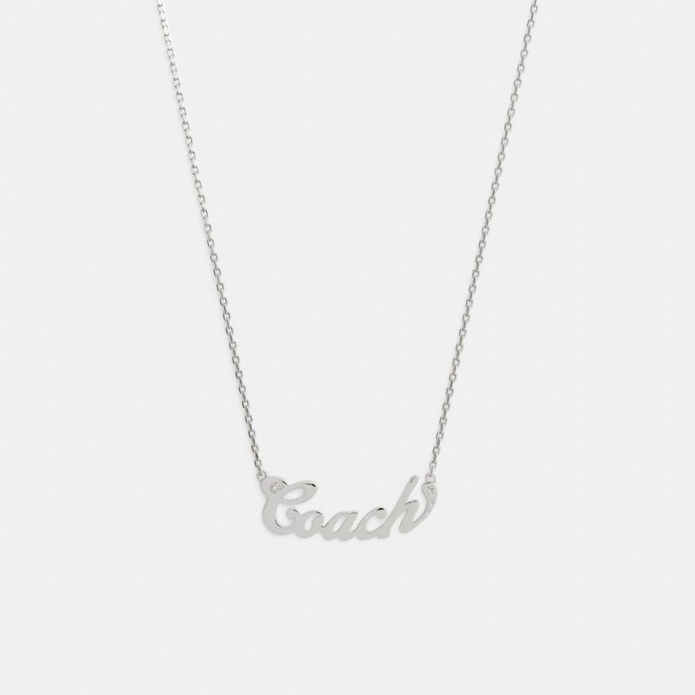 Modèle ludique et rétro, ce collier chaîne avec nom est orné d’une inscription Coach manuscrite. Il est complété par notre petite étiquette et un fermoir réglable pour le porter long ou court.