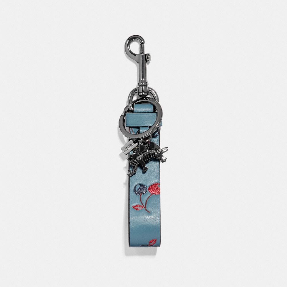 Rassemblez vos clés avec cette dragonne en cuir tanné à imprimé floral ornée d’une breloque fun et d’une étiquette Coach. Utilisez le fermoir à ressort pour l’accrocher à votre sac préféré.