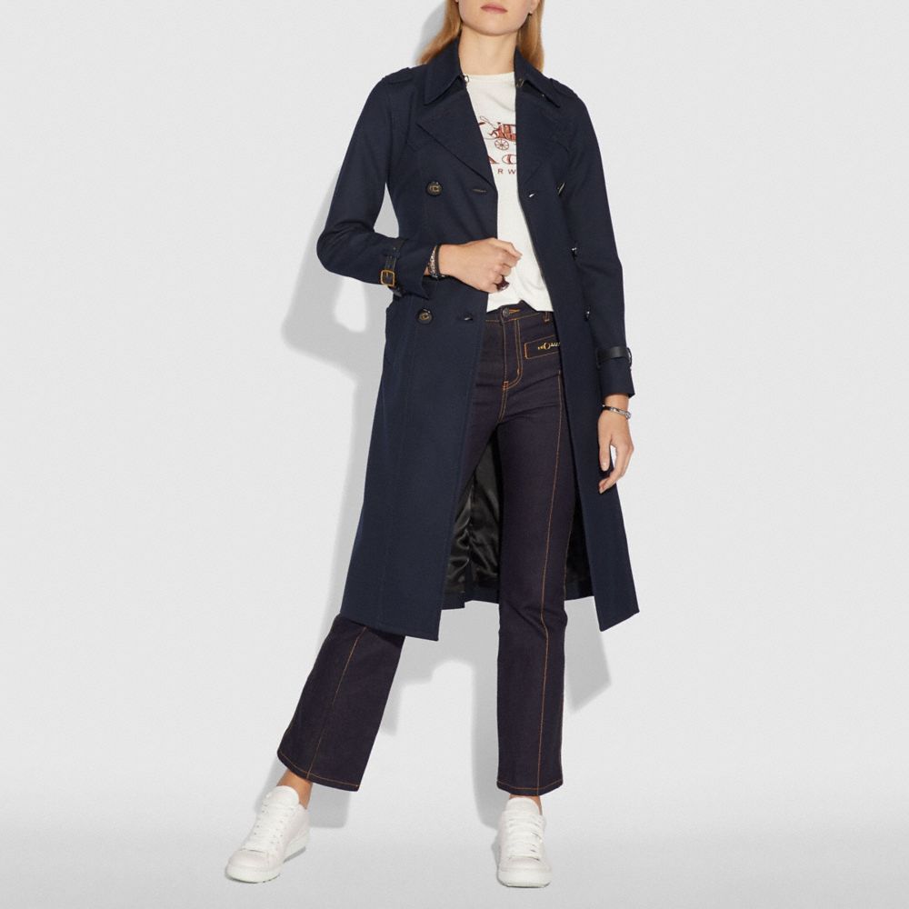 The traditional trench is updated for the season with a slim, tailored fit. Designed in a heavyweight cotton, the warm coat is finished with leather belting at the sleeves for a distinctive Coach touch.
