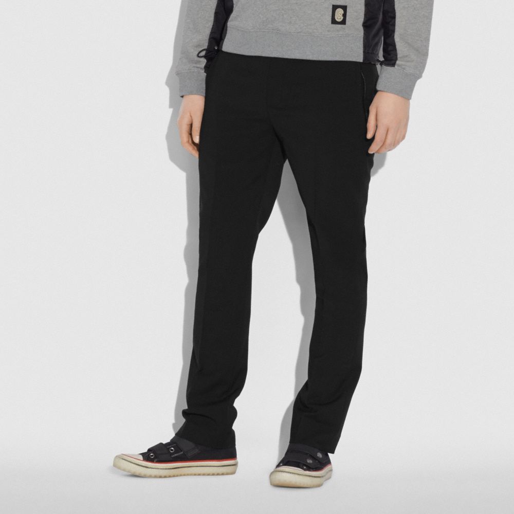 Fuse comfort with style, this trouser and jogger mashup is crafted of a soft wool-blend with added stretch for increased flexibility. The lined, classic-fit style is finished with a comfortable drawstring waist and front zip pockets.