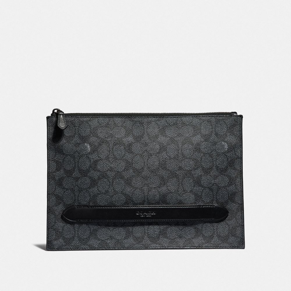 Confectionnée en toile exclusive, cette pochette structurée est conçue avec une large base pour tenir debout même vide. Le compartiment central zippé accueillera votre iPad®, votre téléphone, votre bloc-notes et vos autres accessoires, tandis que vous pourrez glisser vos tickets, votre pièce d’identité et votre monnaie dans la poche avant zippée pour un accès facile.