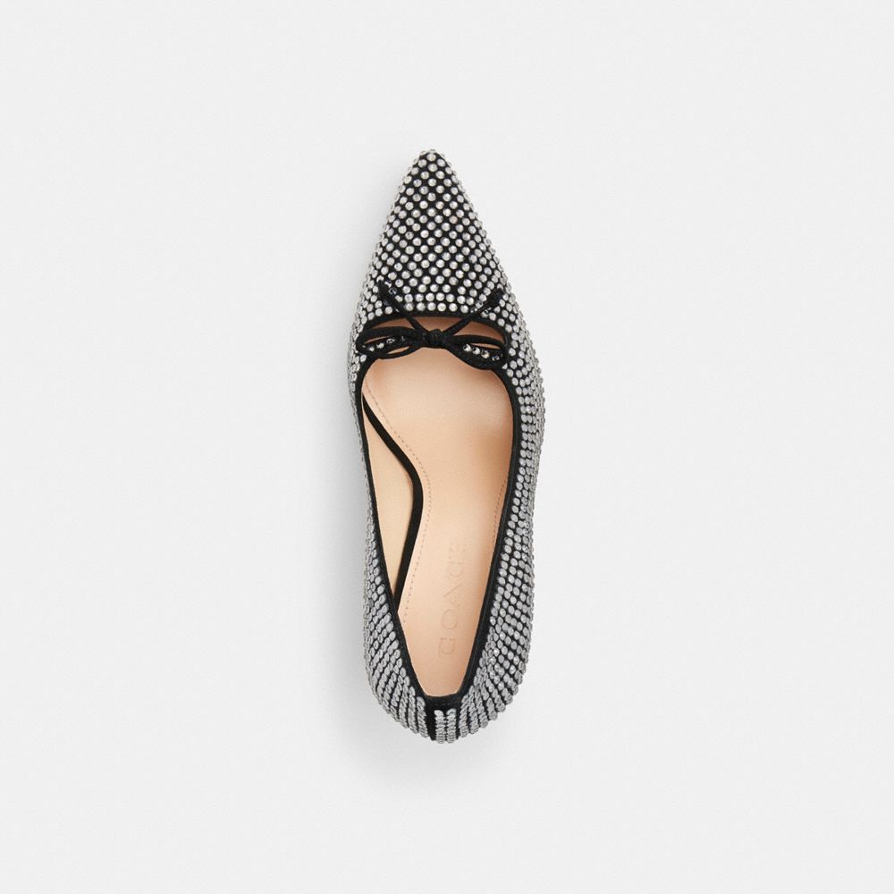 Glissez-vous dans quelque chose de brillant avec notre escarpin à bout pointu. Confectionné en daim velouté orné de cristaux pavés étincelants, ce modèle à enfiler repose sur un talon aiguille et est orné d’un nœud délicat.