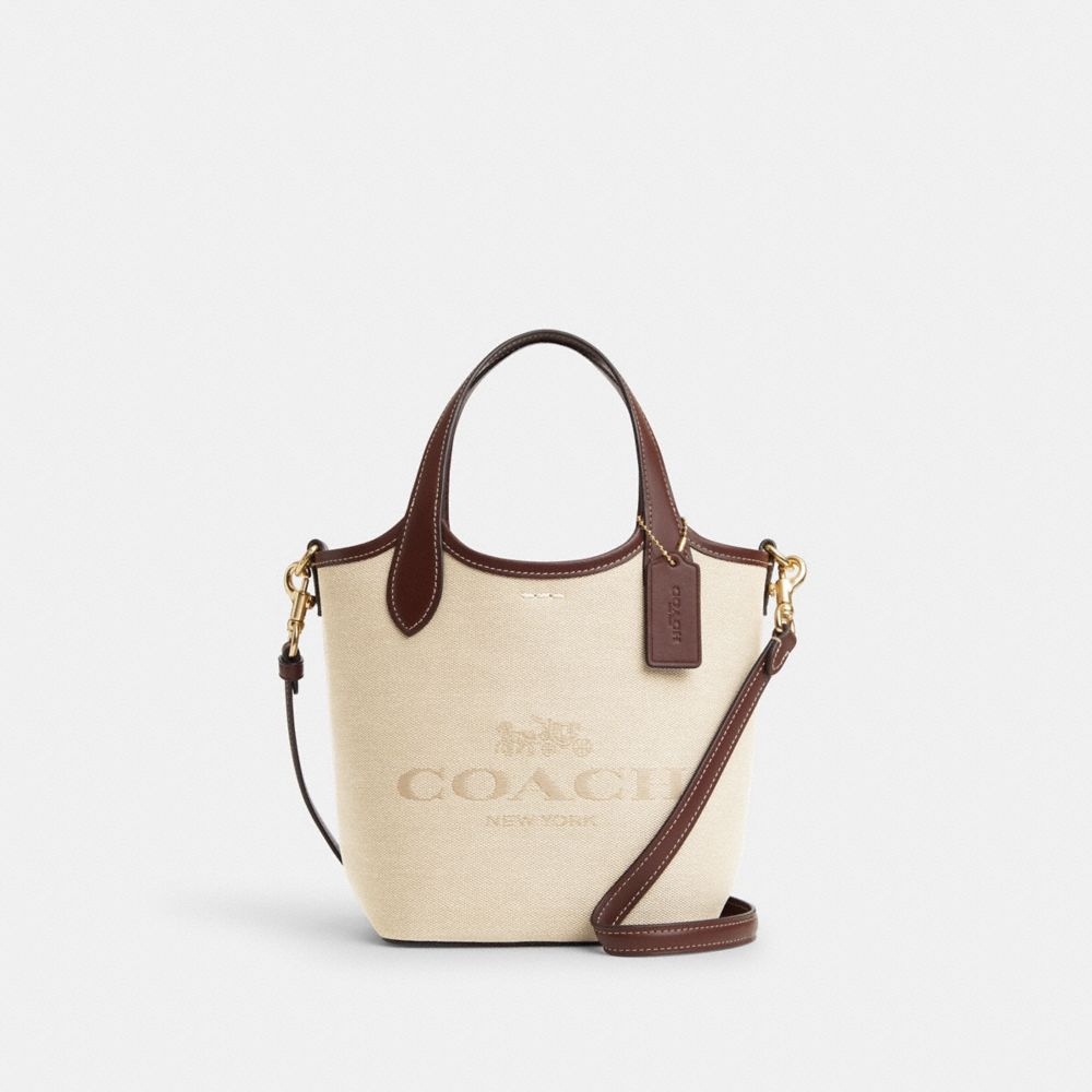 Splash. Our Hanna bag is a perfect bucket. Crafted of canvas and finished with refined calf leather, Hanna is a bucket bag designed with style and versatility in mind, with room for your wallet, phone and other essentials. This canvas shoulder bag travels well and is easily worn crossbody or carried by its handles. Its secure magnetic snap closure makes opening and closing it, well, a snap. Looking for effortlessly elegant women's shoulder bags? Hanna has it all.