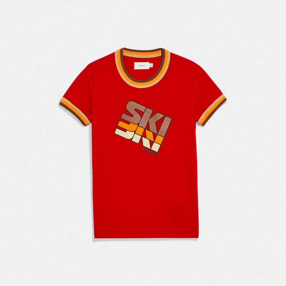Conçu de coton certifié biologique cultivé sans engrais chimiques ni pesticides, ce t-shirt fait partie de la collection Coach Forever, laquelle est inspirée de notre engagement à repenser et à réduire notre impact sur la planète. Avec son audacieux graphique ski de style rétro, ce chandail à col rond d’ajustement classique est orné d’un garnissage à contraste de couleur.