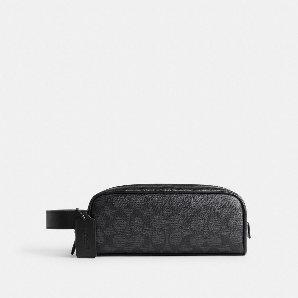 Cette trousse de voyage à fermeture éclair offre des dimensions idéales pour ranger vos affaires de toilettes et vos petits essentiels en toute sécurité. Ce modèle en cuir raffiné et en toile signature est doté d’une poche avec fermeture éclair facile d’accès à l’extérieur et d’une poignée pratique sur le côté pour le transporter ou le suspendre.