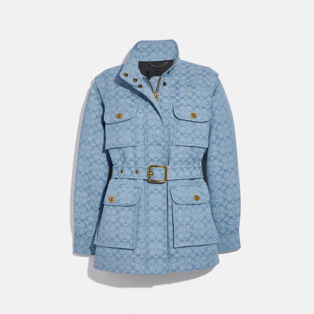 Ajoutez notre Signature à votre style avec cette veste de champ d’inspiration militaire. Conçu de notre chambray Signature robuste, ce style à ajustement décontracté avec ceinture réglable à la taille pour ajustement personnalisé est doté de poches cargo surdimensionnées parfaites pour les petits essentiels et de nos fermetures à verrou tournant iconiques pour un style extra Coach.