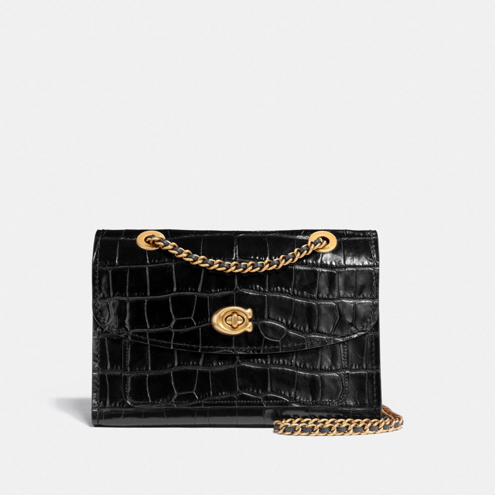 Structuré et léger, le Parker est un sac polyvalent à la fois élégant et simple. Il est confectionné en cuir embossé crocodile et agrémenté d’un fermoir pivotant exclusif. La bandoulière chaîne et cuir peut se transformer en deux petites anses.